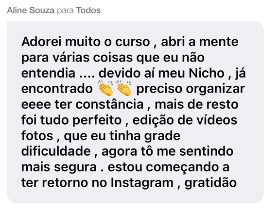 Eu não sou um desses gurus da internet que vai te ensinar coisas que eu nunca fiz. Tudo que você vai aprender nesse curso foi testado e validado ao longo de toda a minha experiência como empreendedora!